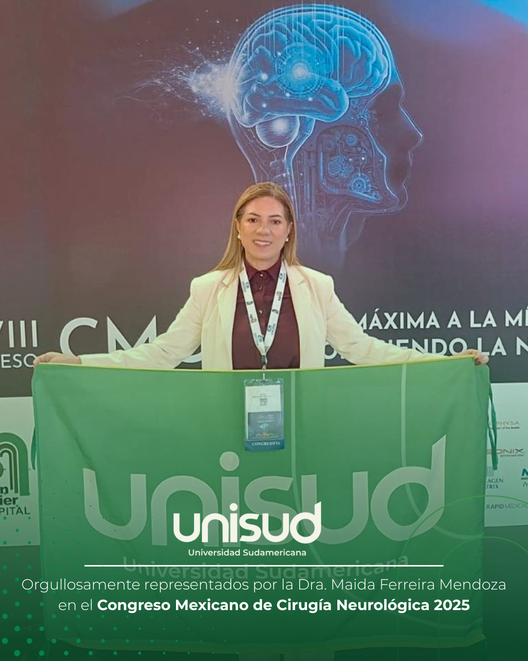 La Universidad Sudamericana, a través de su Facultad de Ciencias de la Salud, estuvo representada en el XXVIII Congreso Mexicano de Cirugía Neurológica 2025, realizado el pasado julio en Guadalajara, México. En esta ocasión, la Mgtr. Maida Ferreira Mendoza, docente de la UniSud, participó en modalidad póster, dentro de la categoría Neurotrauma, presentando el trabajo titulado “Traumatic Brain Injury in a Public Hospital: Incidence, Mortality, Clinical and Social Determinants (2023–2025)”.