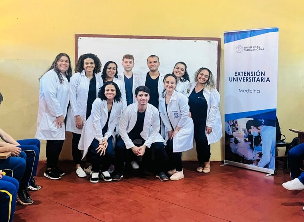 En el marco de las actividades de Extensión Universitaria Intra Muro, estudiantes del séptimo semestre de la carrera de Medicina de la Universidad Sudamericana – Sede Central Pedro Juan Caballero llevaron a cabo una charla educativa sobre los efectos de la marihuana en la salud, bajo la coordinación de la Dra. Ignacia Borjes, docente de la asignatura Toxicología.