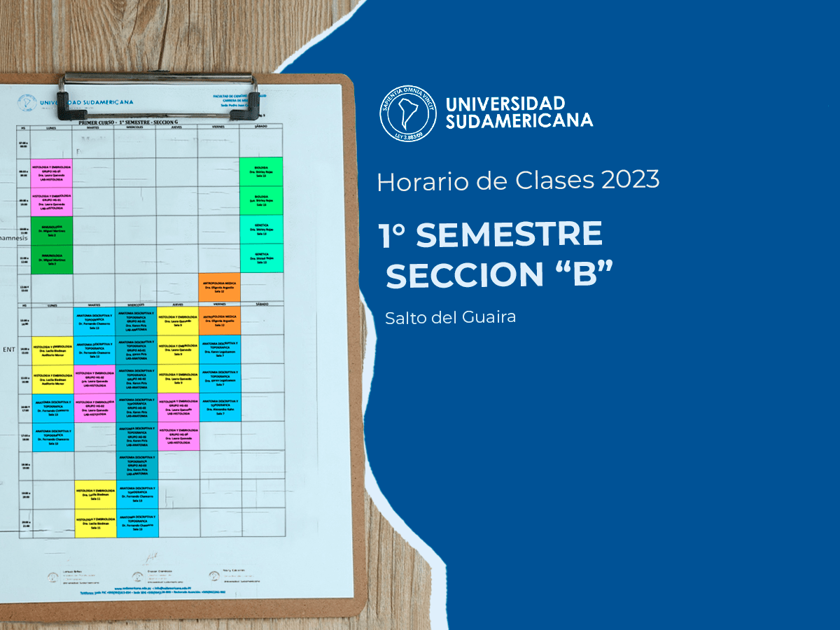 Horario de Clases 2023 – 1° Curso Sección B – SDG