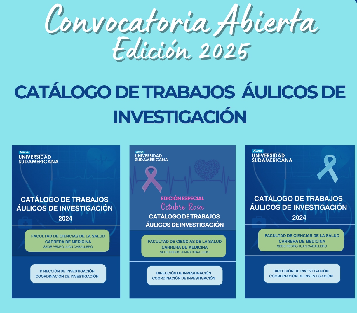La Dirección de Investigación de la Universidad Sudamericana anuncia la apertura de la convocatoria para la Primera Edición 2025 del Catálogo de Trabajos Áulicos de Investigación, una iniciativa que busca reconocer y difundir los aportes científicos realizados por los estudiantes en el marco de sus asignaturas.