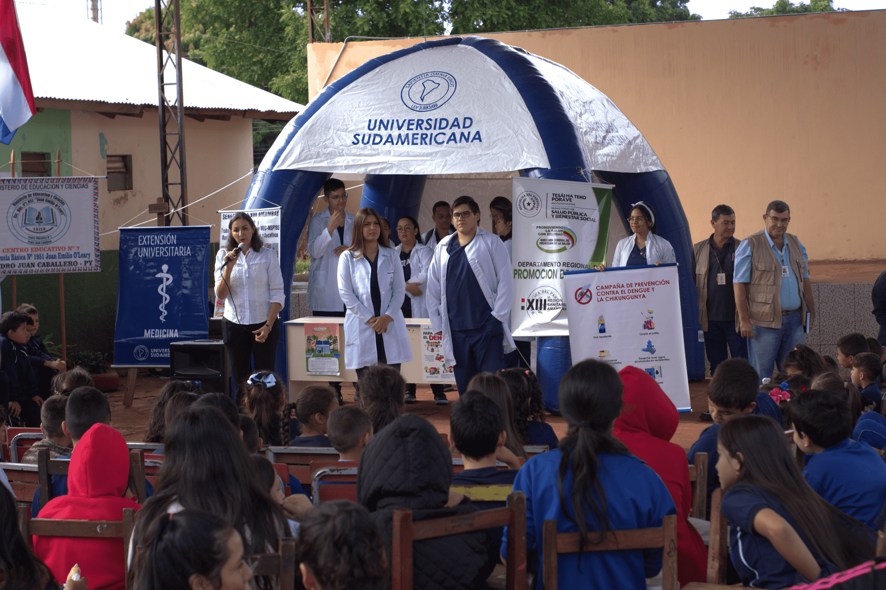 Los alumnos de la Escuela Mariscal López recibieron charlas educativas sobre el Chikungunya y la importancia de eliminar los criaderos del vector Aedes Aegypti, en la actividad se habló sobre los síntomas y métodos de prevención de la patología, además asistir con atenciones médicas a los alumnos con probables síntomas de la enfermedad.