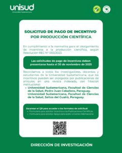 La Dirección de Investigación de la Universidad Sudamericana informa a toda la comunidad académica que se encuentra habilitado el segundo periodo de solicitud de pago