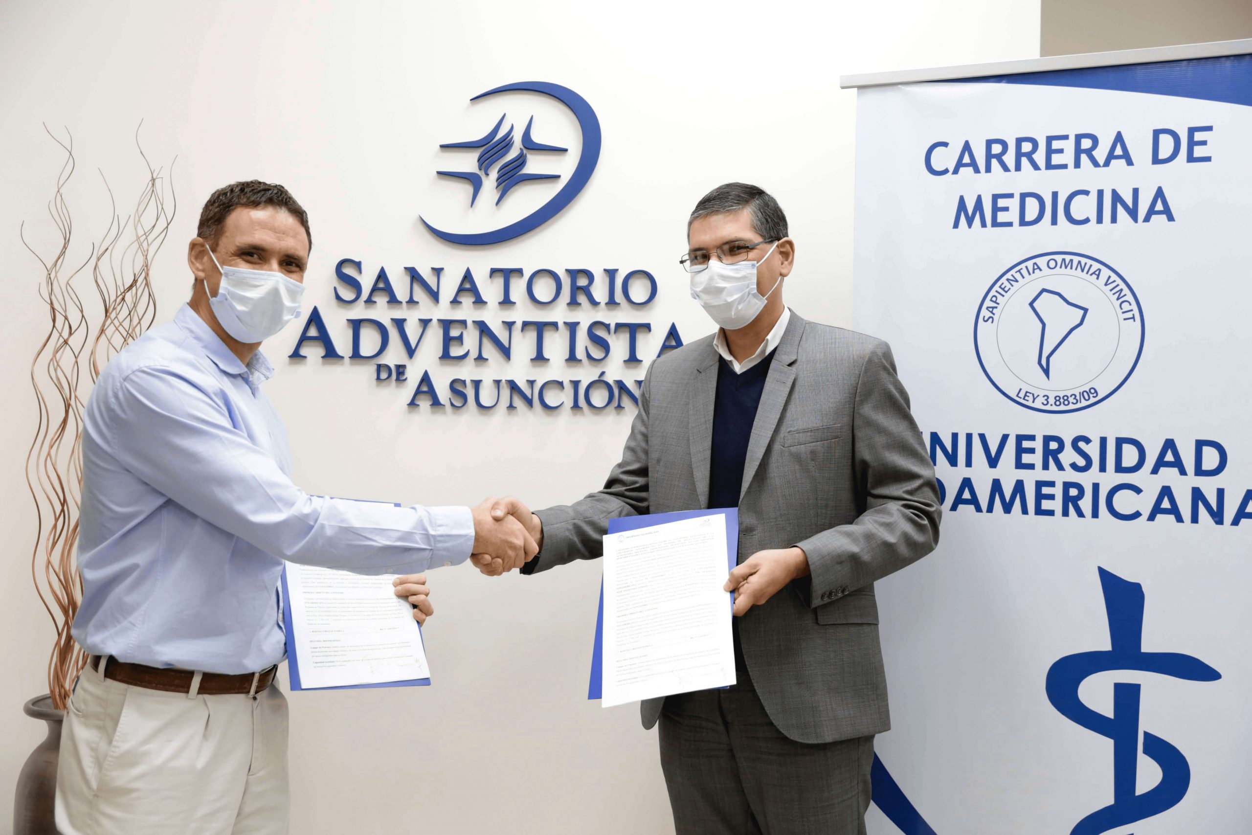 Se realizó la firma del convenio interinstitucional entre el Sanatorio Adventista y la Universidad Sudamericana, en materia de regulación de las actividades asistencial docente realizada en los servicios dependientes del sanatorio de la ciudad de Asunción.