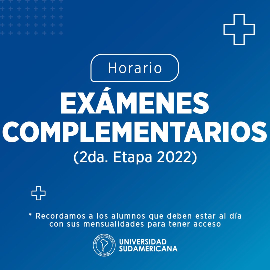 Horario de exámenes complementarios 1 y 2 correspondientes a la 2° Etapa 2022, sede Pedro Juan Caballero.