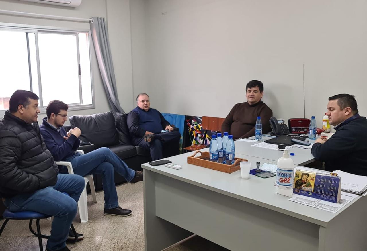 El decano de la Universidad Sudamericana, Dr. Esteban Encina, mantuvo una reunión con los directivos del Instituto de Previsión Social (IPS), Dr. Jorge Batista Gerente de Salud, el Dr. Santiago Garcia, director de hospitales del Área Interior y la Dra. Romi Alcaraz, jefa del Centro de Productor de Sangre.