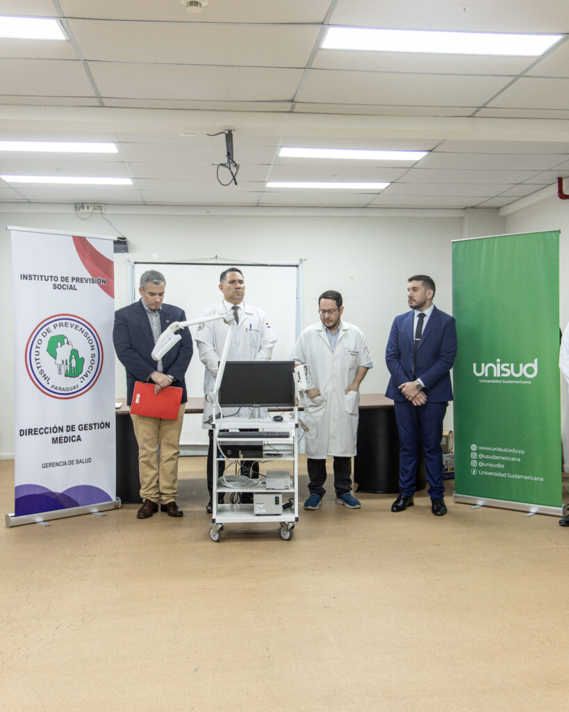 El acto contó con la presencia del Abg. Walter Iván Álvarez González, Secretario General de UNISUD, junto a autoridades del IPS: Lic. Juan Manuel Scavone, Director de Gestión Médica; Dr. Hugo Martínez, Director del Hospital Central; Dr. Edgar Ortega, Coordinador Médico; y Dr. Aníbal Molinas, Jefe del Servicio de Neurología.